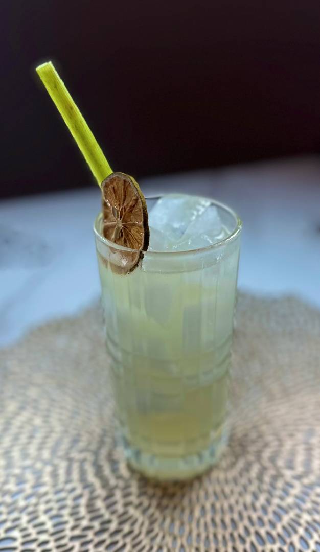 Zero proof Gin, Japanese yuzu, lime juice, speciality of homemade Thai Chili Syrup. Add smooth of sweet honey