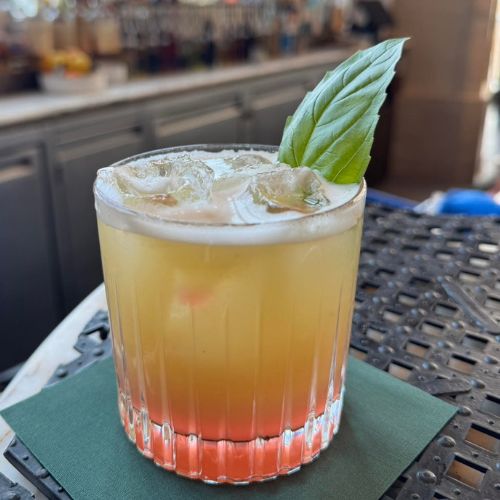 Zero proof Gin, add sweet & sour of watermelon syrup, pineapple juice & lime juice. Basil Leaves on top