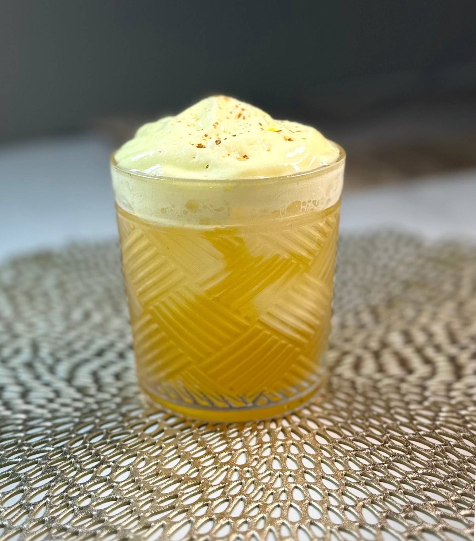 Bacardi spice rum, pineapple juice,lime juice, orgeat syrup. Topped with our bartender secret Mango Foam. Add on spice with salty & chili flake