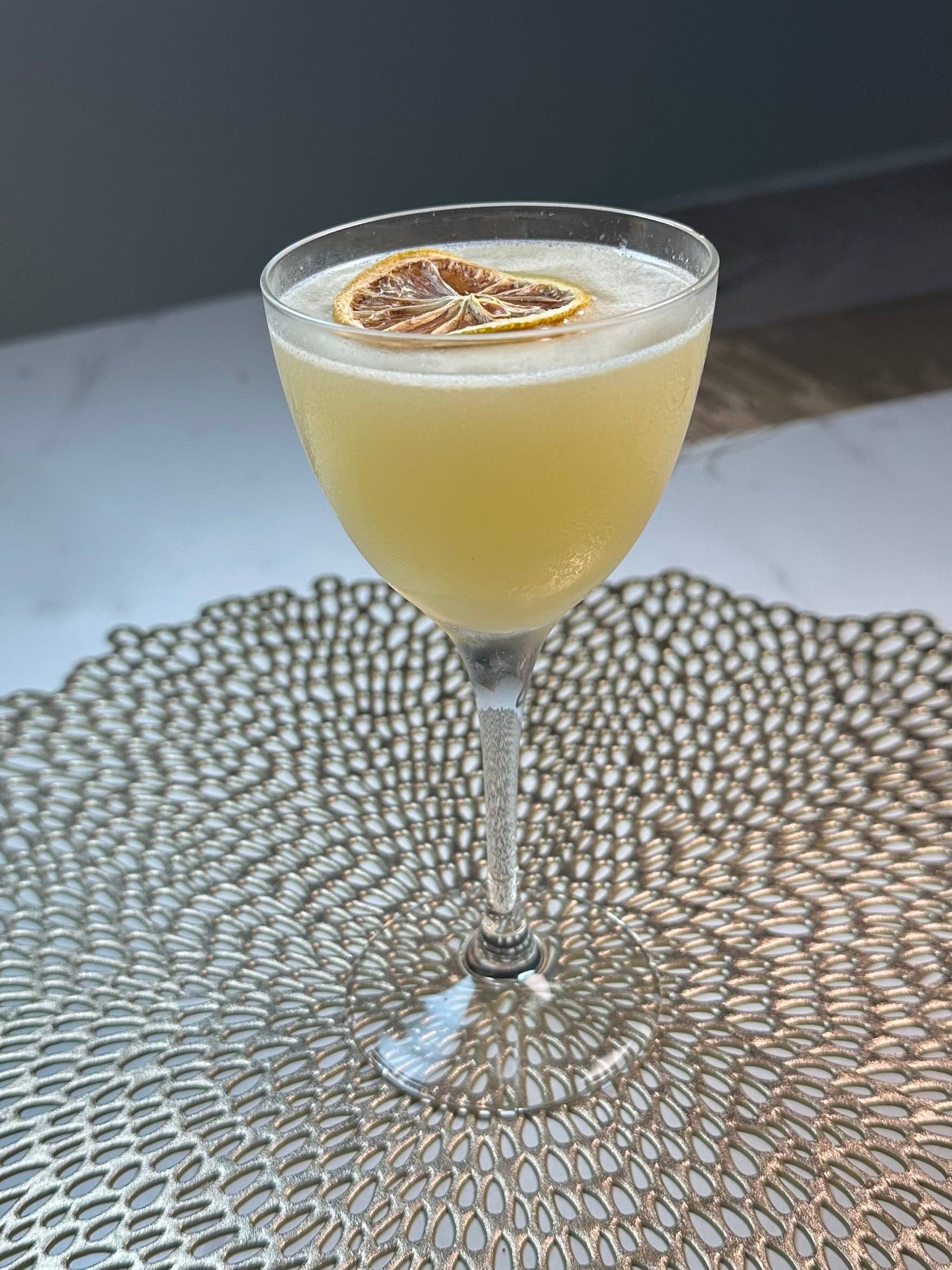 Refreshing Japanese style with Roku Gin & Lemon juice. Blend well with homemade "Honey Miso Syrup". Add on dehydrated lemon sliced