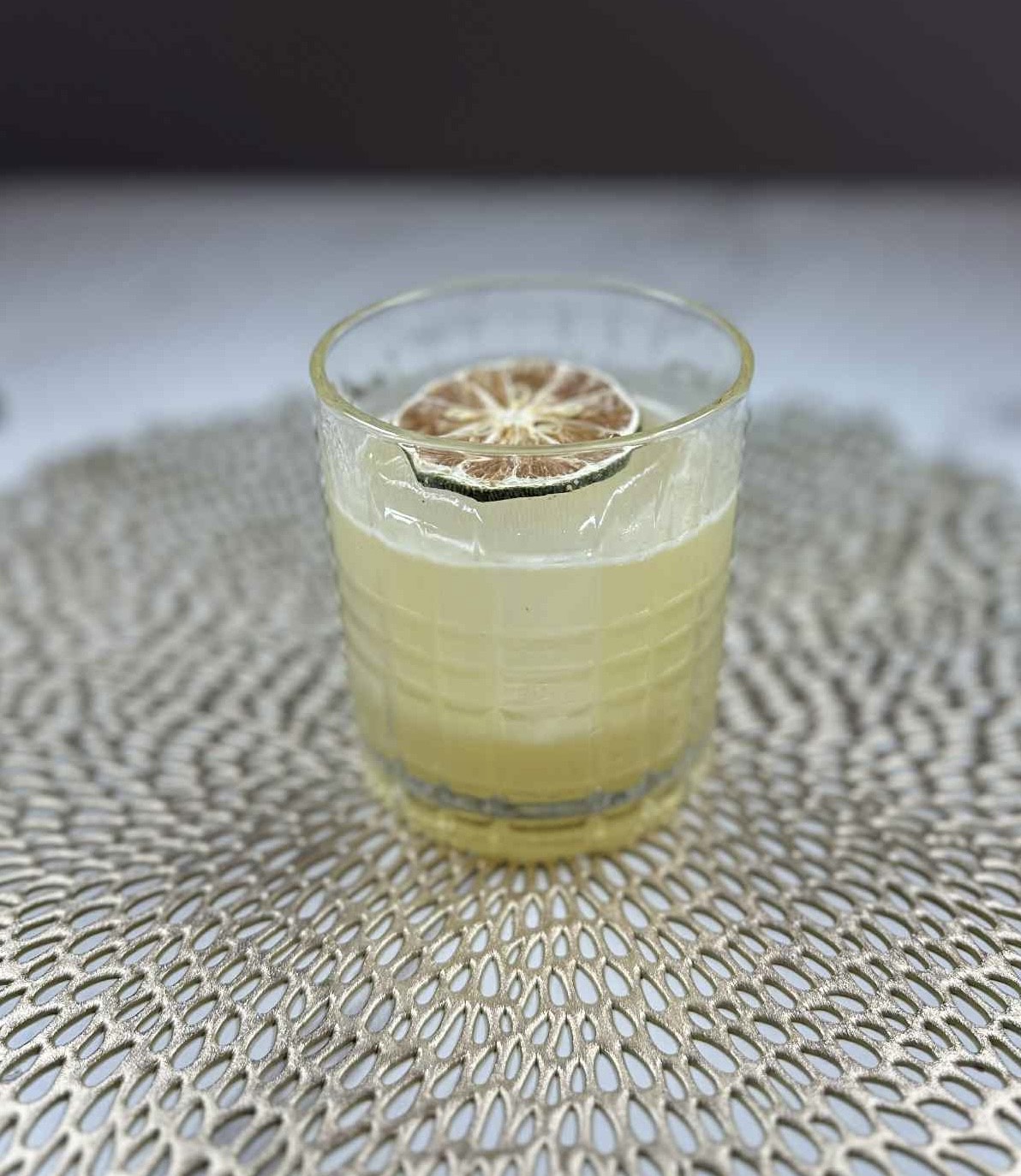 Bourbon/ Rye,Lemon juice, Simple syrup, Egg white, Angostura bitters